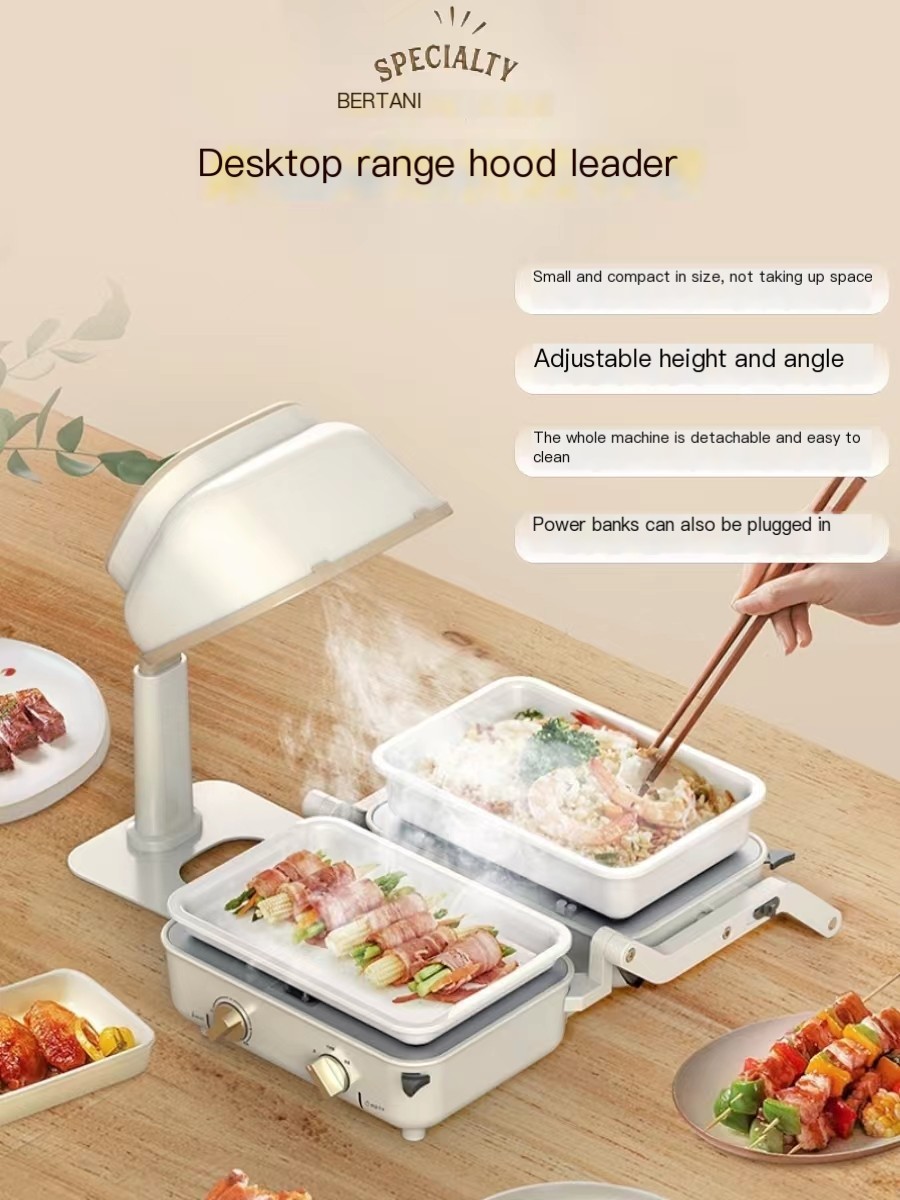 I had hot pot and barbecue once before, and the fumes and water vapor were all over the house. I specially found a tabletop range hood. It felt good when I received it. It's a good smoker. I'll have a barbecue on Saturday to see the effect. I'm looking forward to it.