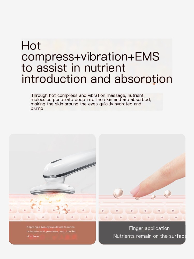 This eye beauty instrument is an eye care artifact that integrates multiple functions.It can not only help fade fine lines, but also effectively improve dark circles and eye bags, while also promoting the absorption of eye cream.This instrument uses high-tech massage technology to provide deep eye massage, effectively relieve eye fatigue and improve the elasticity and luster of eye skin.Whether you are doing daily maintenance or emergency care, this eye beauty instrument can provide you with the best eye care experience.Choosing this eye beauty instrument means choosing a pair of bright, energetic and youthful eyes.