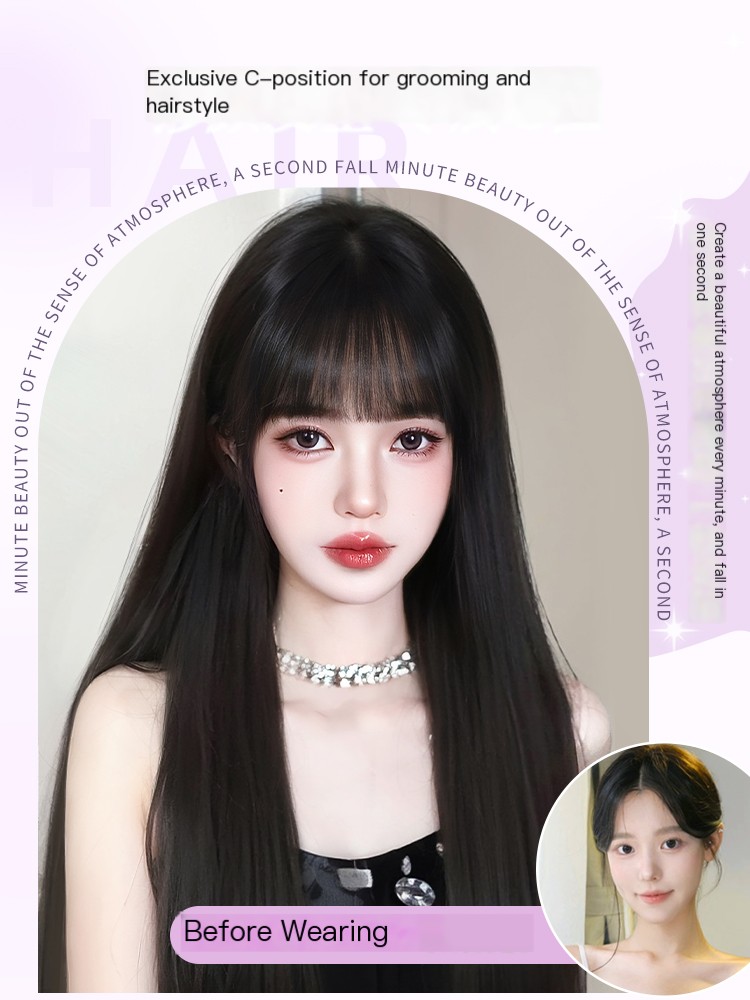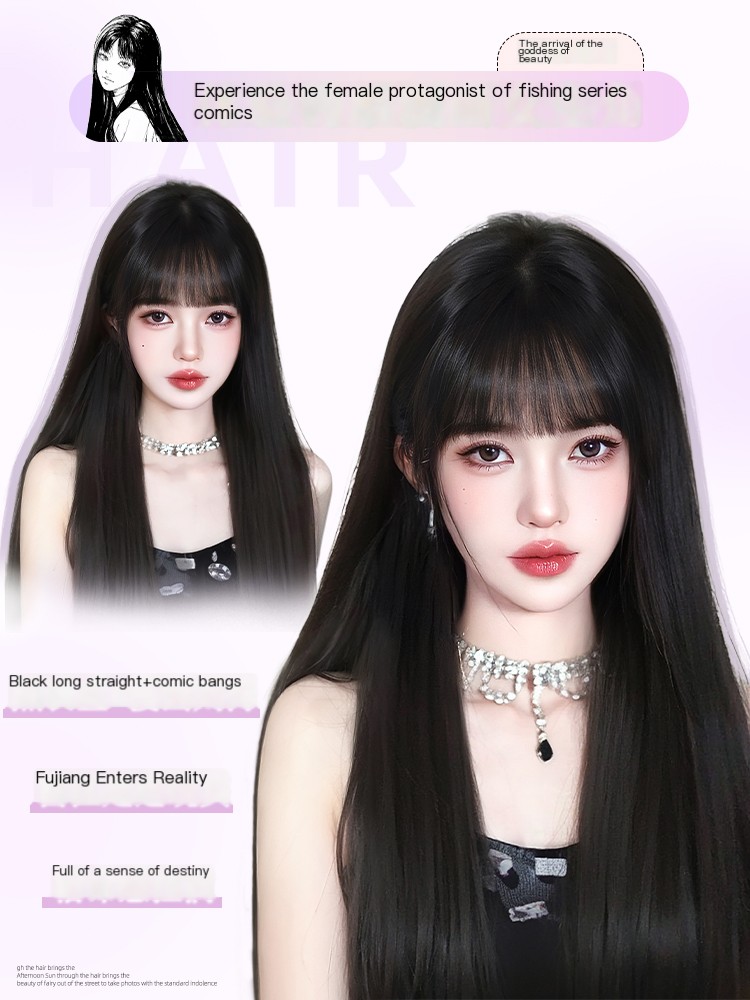 Sky Tree Wig Women’s Medium Long Hair Natural Full Head Cover Simulated Hair Fujiang Style Black Long Straight Full Bangs Wig Cover is a highly realistic full head cover wig suitable for various scenes.This Fujiang-style black long straight bangs wig set is specially designed for women with long hair. It has a natural color and is made of real hair. It is suitable for people with naturally curly or straight hair.This wig is easy to wear, can be used without long-term care, and is suitable for the needs of different hair styles.It is the best choice for women pursuing natural beauty.Whether it is used to match clothes in daily life or used as role-playing in film and television shootings, the Sky Tree Wig for Women with Medium and Long Hair Natural Full Headband Simulated Hair Fujiang Style Black Long Straight Full Bangs Wig Cover is your indispensable perfect accessory. .