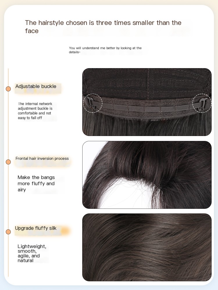 The overall look is very high-quality, the hair is very fluffy and does not stick to the scalp, and it is very convenient to wear. There is no problem wearing it when going out.