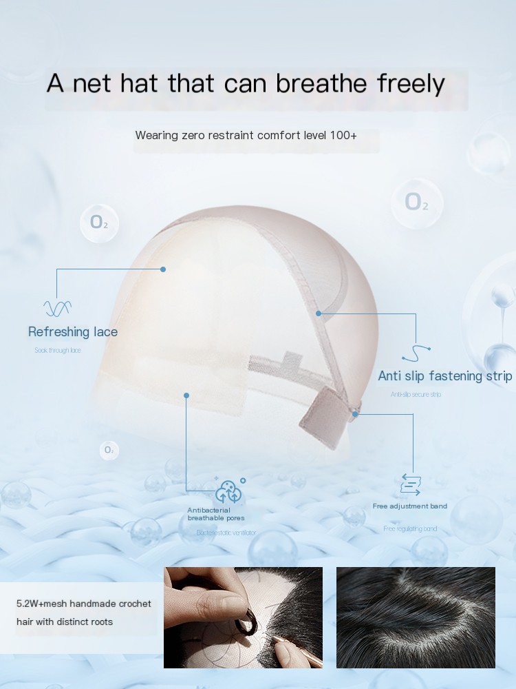 The quality of the wig is excellent, with a great texture. After wearing it, it looks like a lifesaver with thick hair. This one is simple and practical, with hair strands that are the same as your own hair. The details are well done, and the clips are particularly firm and do not get stuck in the hair. The inner mesh is a very lightweight and breathable mesh, giving an overall feeling of lightness.