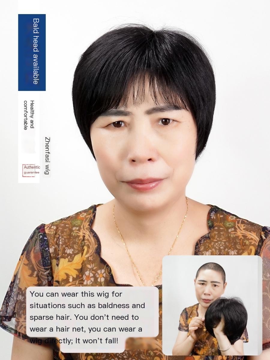 Mother Wig Female Short Hair Real Hair Full Real Hair Full Head Cover Middle-aged and Elderly Chemotherapy Bald Black Wig Full Full Human Hair Wig is a full human hair wig specially designed for middle-aged and elderly women. It is suitable for people after chemotherapy and bald heads.This wig is made of high-quality materials, soft and comfortable to the touch, extremely lifelike, and blends perfectly into the scalp without any strange feeling.Full headgear design, suitable for various head shapes, easy to wear and adjust.The black model is suitable for various occasions and meets the needs of mothers.It is the best choice for caring for mothers, relatives or friends after chemotherapy.