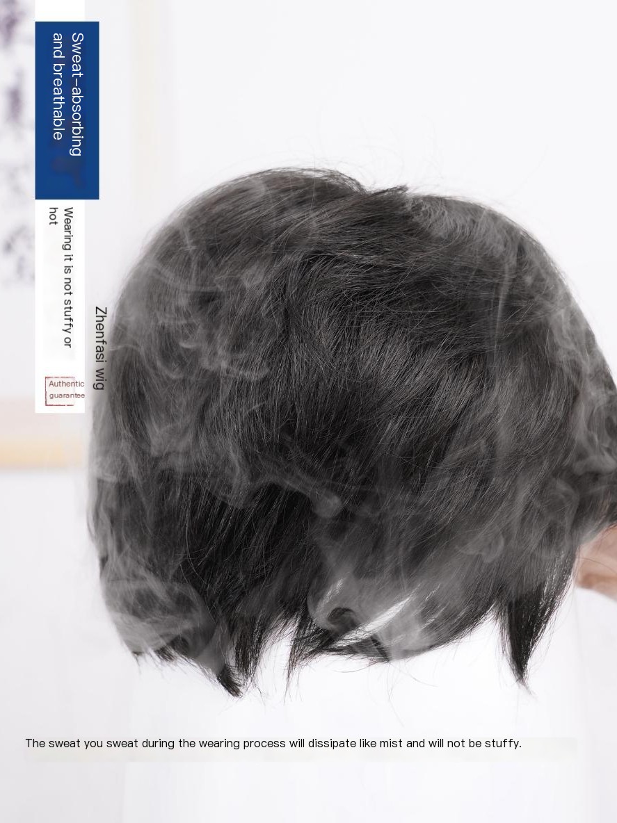 Mother’s wig female short hair real hair full real hair full headgear middle-aged and elderly chemotherapy bald black wig full head