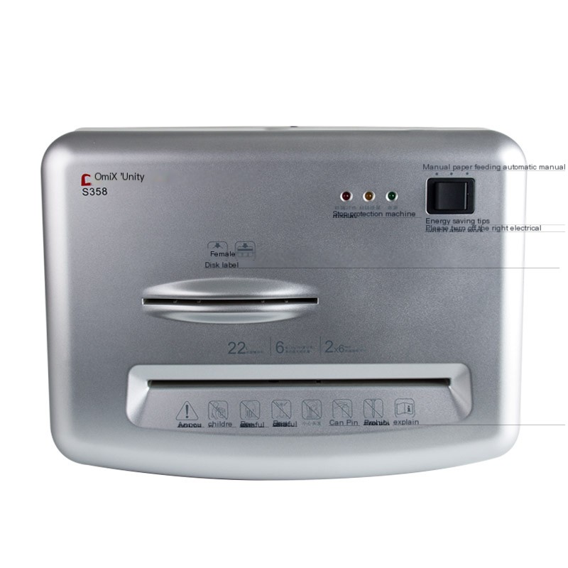 The Qixin S358 office commercial shredder is a high-capacity shredder designed specifically for homes and offices. This machine has a large capacity of 22L and can easily handle large amounts of files and paper. Its unique rice shaped 5-level confidentiality design ensures even size of shredded paper, easy handling, and strong confidentiality. In addition, it is equipped with an electric high-power motor, which ensures faster shredding speed and higher efficiency. In terms of silent operation, this shredder performs well and will not interfere with the office environment. This Qixin S358 commercial office shredder is your ideal choice, which can meet the needs of shredding while also having high efficiency, high confidentiality, and silent characteristics.