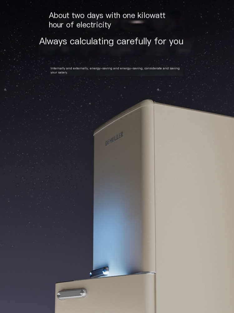 This Demler vintage refrigerator is an ideal choice for family life. Its large capacity design can accommodate your various foods and drinks, ensuring that your family members can enjoy fresh food after long outings or busy days. This refrigerator features a double door design, providing ample storage space for both refrigerated and frozen foods to be properly stored. Its silent and energy-saving features allow you to enjoy fresh food while also saving energy and reducing electricity bills. In addition, the design inspiration for this refrigerator comes from a retro style, and its high aesthetic appearance will add a touch of fashion and elegance to your home. It is not only a practical household appliance, but also a part of your home decoration. In general, the Demler retro refrigerator is a large capacity, high aesthetics, energy-saving and silent refrigerator suitable for all households that value quality of life.