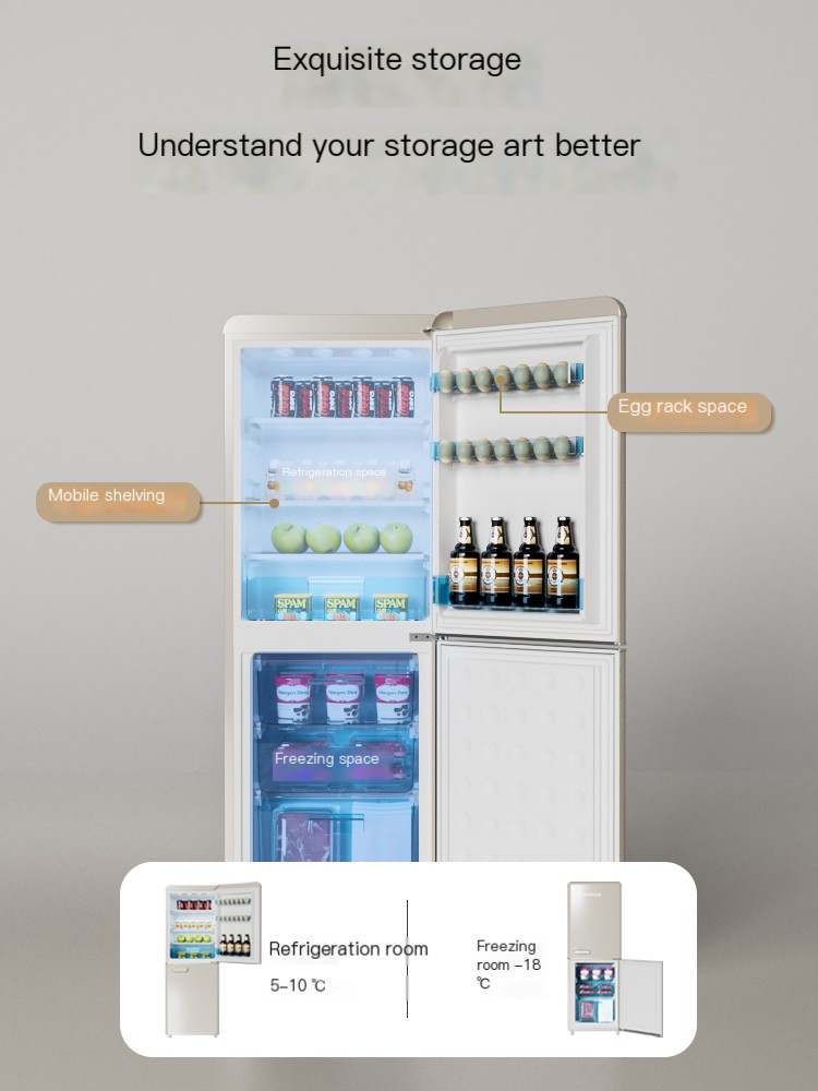 The capacity is sufficient. It’s quite compact. The color is retro milky white. It’s suitable for small-sized households. I don’t like large refrigerators. The capacity is enough. Recommended.