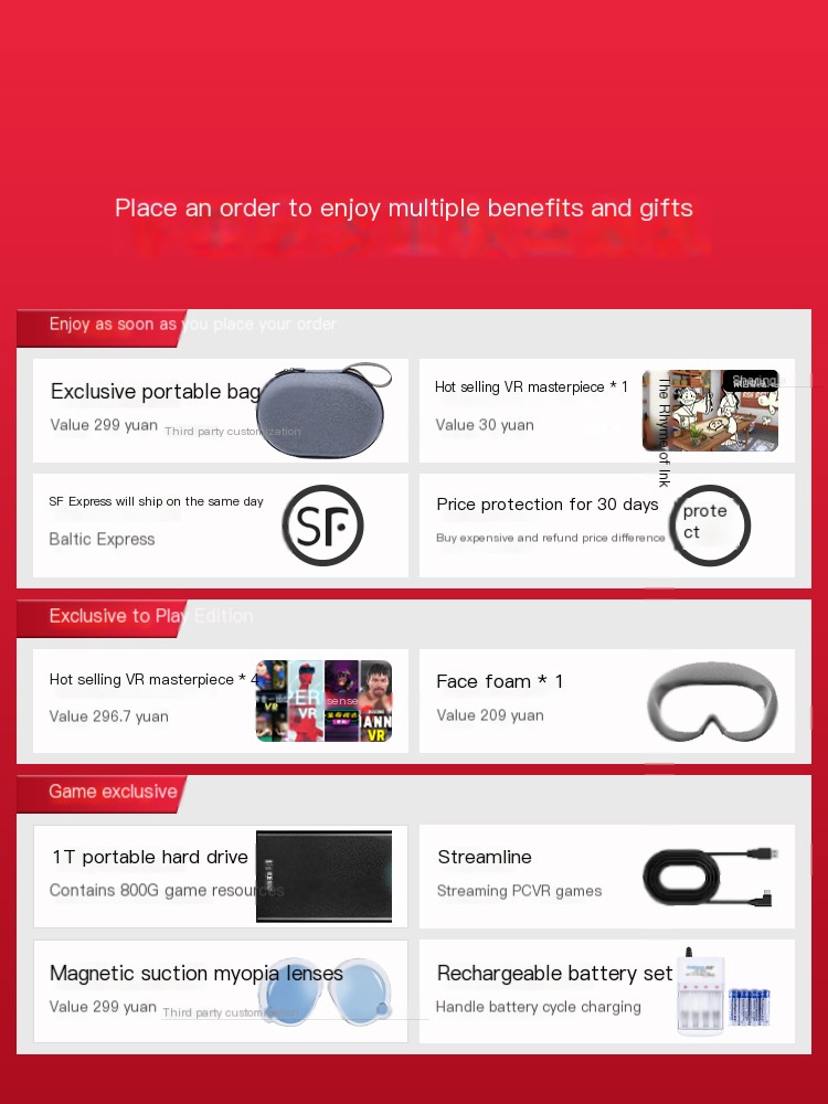 | sort by color | Enjoy up to 5 VR masterpieces+1T gaming hard drive+exclusive portable bag+magnetic myopia lenses+streaming cable, 8+128G Standard Edition (Comes with Exclusive Portable Bag+1 VR Masterpiece), Pro 8G+512G Main Edition (Comes with Exclusive Portable Bag+1 VR Masterpiece), Pro 8G+512G Gaming Edition (1T gaming hard drive+exclusive portable bag+myopia lenses+1 VR masterpiece), Pro 8G+512G Viewing Edition (1T viewing hard drive+exclusive portable bag+myopia lenses+1 VR masterpiece), 8+256G Play Edition (Comes with Exclusive Portable Bag+5 VR Masterpieces), 8+256G Gaming Edition (1T gaming hard drive+exclusive portable bag+myopia lenses+5 VR masterpieces), 8+256G Enjoy Movie Edition (1T Movie Hard Drive+Exclusive Portable Bag+Myopia Lens+5 VR Masterpieces), 8+256G Host Edition (Comes with Exclusive Portable Bag+1 VR Masterpiece), 8+128G Play Edition (Comes with Exclusive Portable Bag+5 VR Masterpieces) |