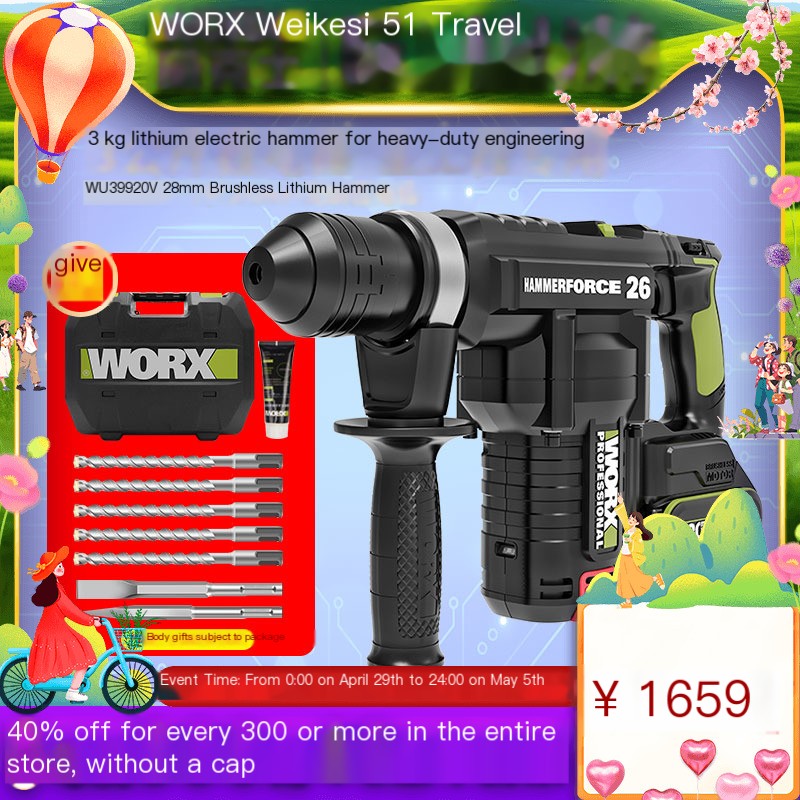 The WU399 round handle concrete impact hammer planting steel bar electric hammer electric hammer is an efficient and practical electric tool designed specifically for concrete construction in the construction and decoration industries. It adopts a brushless motor, which has the characteristics of long lifespan, low noise, and low vibration, greatly improving work efficiency. This electric hammer is equipped with a round handle, which is convenient to use and suitable for operation in various environments. In addition, it also has strong concrete impact force, suitable for various types of concrete, such as high-rise buildings, bridges, tunnels, etc. In addition, it can also be used for reinforcement construction and has multiple functions, making it a powerful electric tool. Both individual users and professionals can benefit from it.