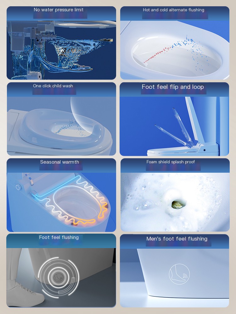 Intelligent function: simple and easy to use, foot feeling cover opening, foam shield and cushion heating function, water impact: very strong! Materials and workmanship: The materials are abundant, simple and elegant! Design style: Fashionable customer service, super excellent, and enthusiastic to answer any questions with flowers!