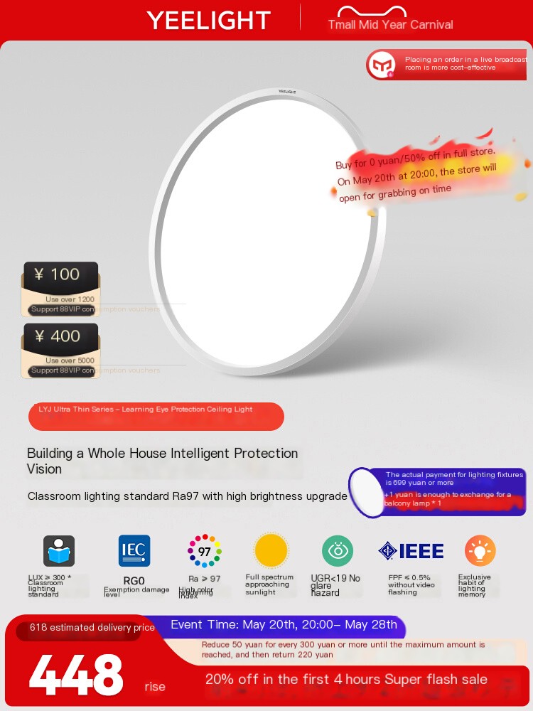Yeelight ultra-thin full-spectrum eye-protecting children’s room ceiling lamp is an intelligent lighting product specially designed for children’s rooms. It integrates Mijia intelligent control and provides a modern and simple design style.This lamp is characterized by its ultra-thin full-spectrum design, which can effectively reduce blue light radiation, provide comfortable light, and help protect children’s vision.At the same time, the ceiling-mounted installation method makes installation more convenient, without drilling or cutting, and has no impact on the original decoration style of the room.The modern and simple design style is suitable for rooms with various decoration styles and can add warmth and comfort to the room.Mijia intelligent control enables this lamp to be seamlessly connected with the Mijia smart home system to provide a personalized lighting experience.In general, the Yeelight ultra-thin full-spectrum eye-protecting children’s room ceiling lamp is an intelligent lighting product with advanced design, complete functions, easy installation, and suitable for children’s rooms.