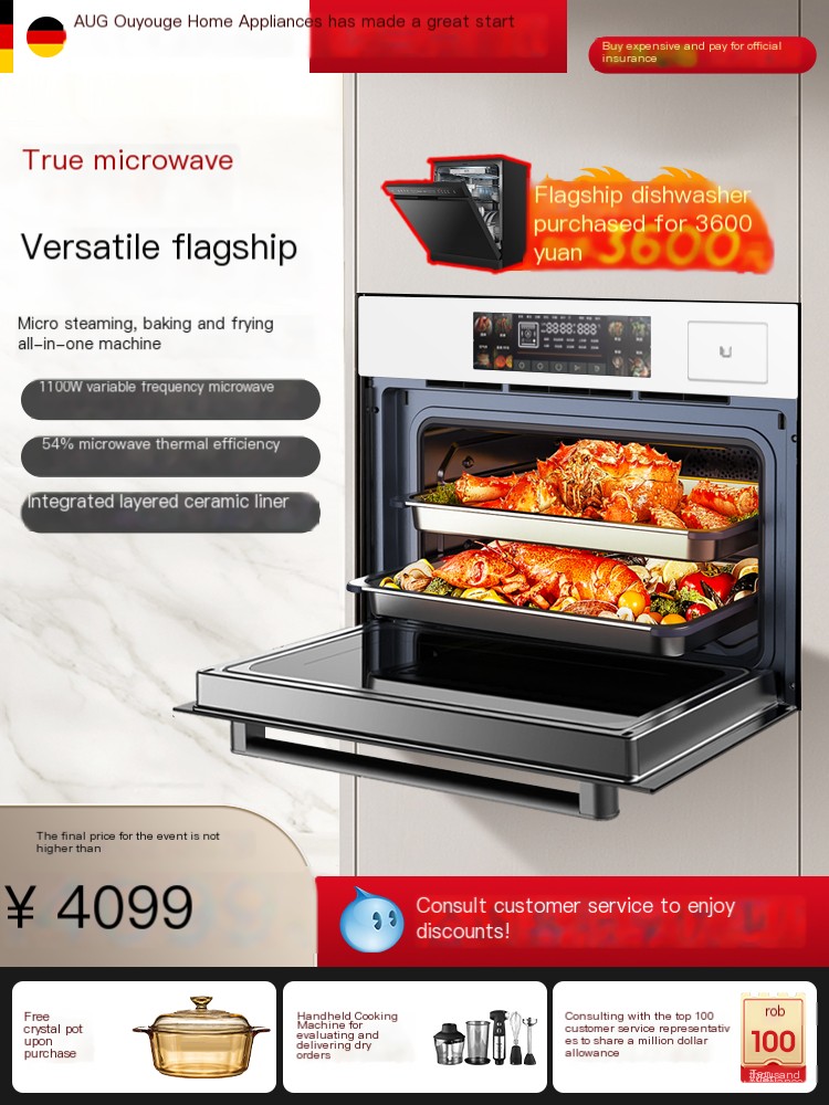 AUG embedded micro steaming and baking integrated machine, ceramic air frying microwave oven, black and white German steaming and baking oven