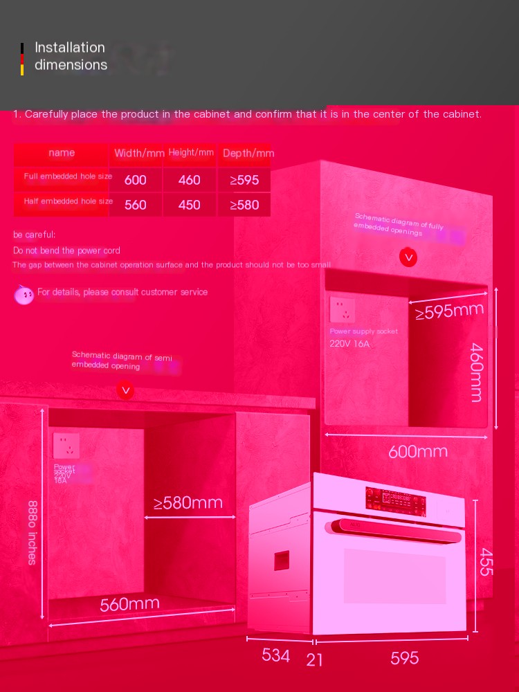 In addition, this microwave oven is also equipped with an embedded design, which is suitable for various kitchen spaces and provides convenience for your cooking process. Its integrated design also reduces the occupation of kitchen space, making your kitchen more tidy and orderly.