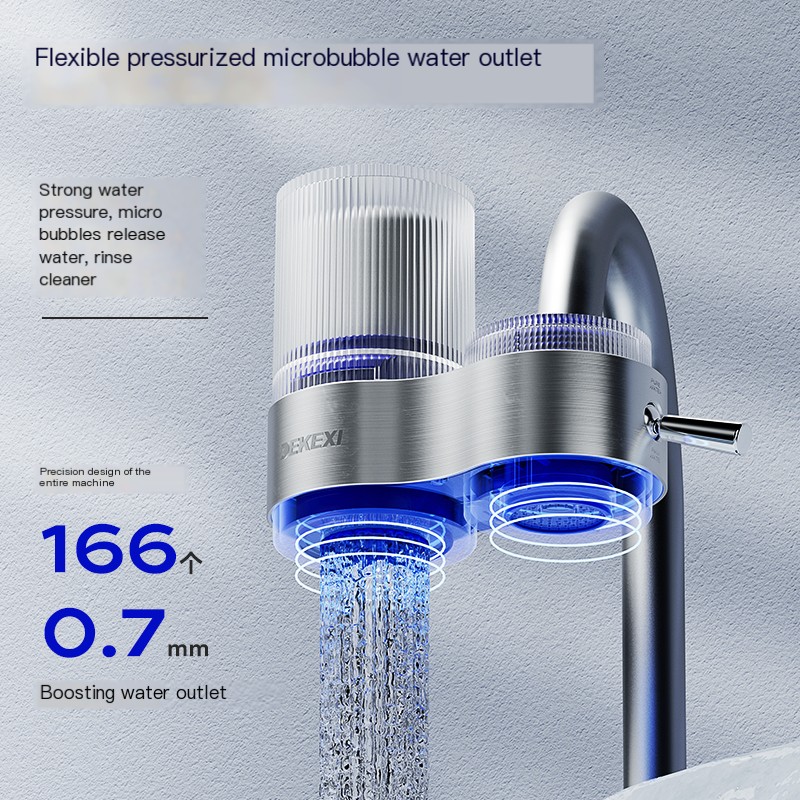 Dexei Water Purifier from Germany is a household faucet filter designed specifically for household kitchens. This ultrafiltration purifier can effectively purify tap water, remove impurities, bacteria, viruses and other harmful substances, retain beneficial minerals, and provide safe and healthy drinking water. This product is compact, easy to install, and does not require professional maintenance, making it an ideal choice for home drinking water. Whether you are pursuing a healthy lifestyle or have strict requirements for water quality, the German Dexei water purifier is your best choice.